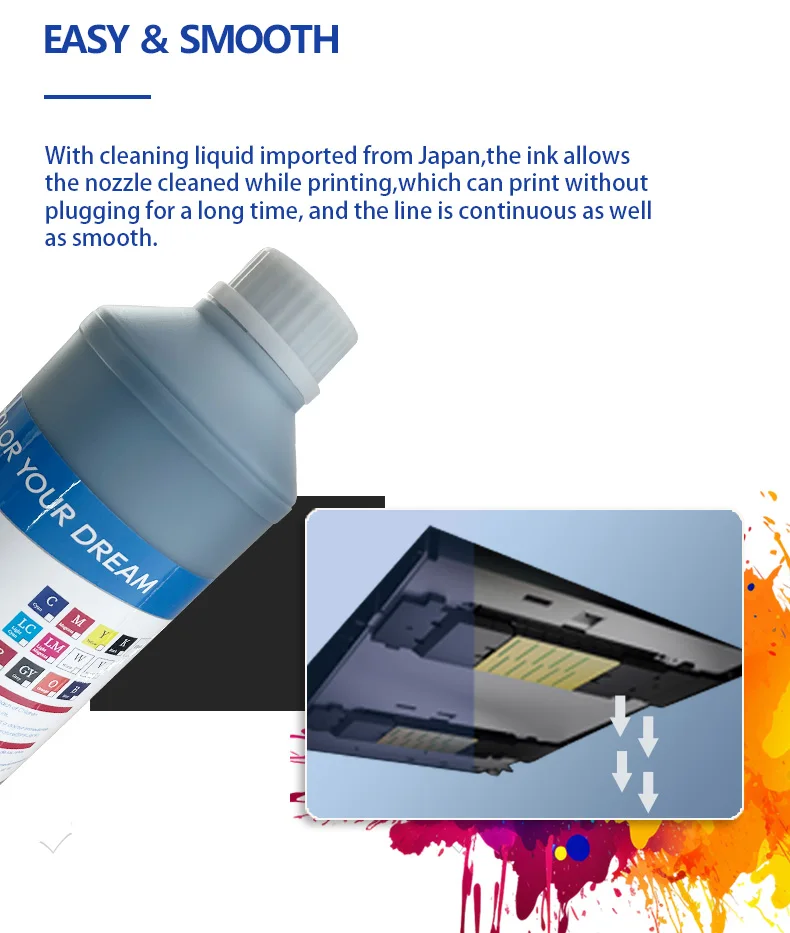 Our technically advanced ink features a precise chemical composition that guarantees excellent color reproduction and smooth ink flow. The carefully calibrated viscosity and surface tension parameters prevent clogging and reduce maintenance requirements, while the high-purity dye particles provide exceptional color saturation and sharp detail definition. Whether you're producing custom apparel, promotional products, or personalized items, this ink delivers professional-grade results that maintain their visual appeal through repeated washing and environmental exposure.